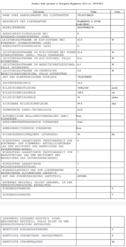 | Bildschirmdiagonale | 109cm (43 Zoll) |