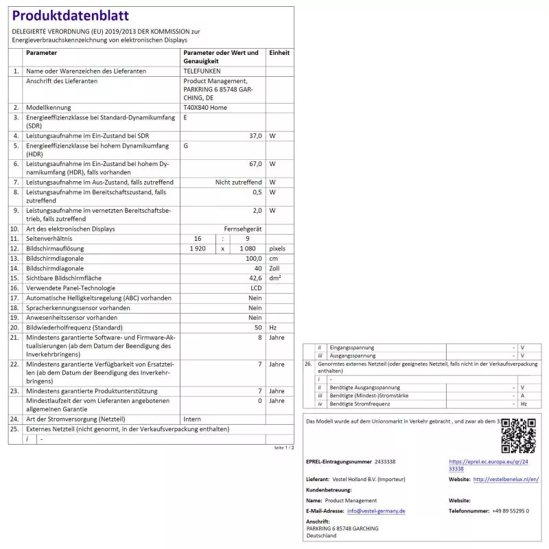 Voll ausgestattet mit digitalem DVB-C, DVB-T/T2 und SAT DVB-S/S2 Empfänger (Triple Tuner). Sie können digitales Fernsehen terrestrisch, über Satellit oder Kabel empfangen, ohne zusätzlichen Receiver. Die SAT Senderliste ist bereits vorprogrammiert. DVB-T2 nach der neusten Norm H.265. Das Gerät bietet eine gute Bildqualität durch optimale Helligkeit und hohe Kontrastverhältnisse, die Farbwiedergabe ist sehr natürlich.