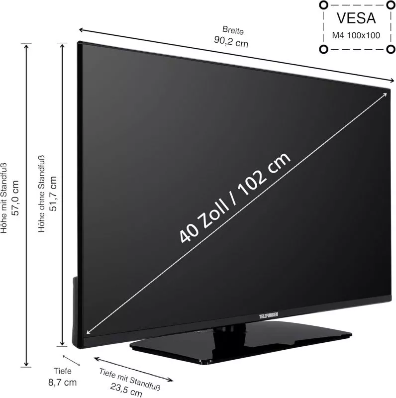 Die neuen Weitwinkel-TVs von Telefunken haben einen Sichtwinkel von je 178 Grad vertikal und horizontal. Perfekte Sicht aus allen Betrachtungswinkeln. Der hochwertige Bildschirm ermöglicht einen Blickwinkel von 87 Grad aus allen Richtungen. Unabhängig von der Blickrichtung hat man immer den gleichen Bildeindruck.