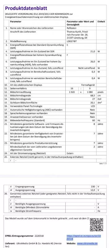 Mit seinem geringen Gewicht und der VESA-Kompatibilität lässt sich der Fernseher platzsparend montieren. Durch seine energieeffiziente Bauweise (Energieeffizienzklasse E) eignet er sich auch für den autarken Betrieb mit einer Bordbatterie. Insgesamt ist der Reflexion LDD27iBT ein kompakter, smarter und reisetauglicher Fernseher, der modernes Entertainment auch unterwegs ermöglicht.